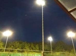 Na ongeveer 27 jaar trouwe dienst zijn dit dan toch de laatste branduren van onze huidige baanverlichting. Ontwikkelingen op het gebied van energieverbruik geeft dat we overgaan op LED verlichting. Dit zal een lager stroomverbruik opleveren en de verlichting heeft ook niet meer de opstarttijd om voluit te branden. Maandag 13 mei wordt gestart met de montage van de nieuwe lampen en op dinsdagavond wordt de nieuwe LED verlichting afgesteld en uitgebreid getest. Vanaf woensdag gaan de banen weer open en kan er met de nieuwe lampen getennist worden! Uiteraard zal dit in het begin best wel even wennen zijn voor met name het andere soort licht. Eén troostende gedachte, daar hebben we allemaal last van.
